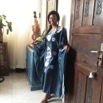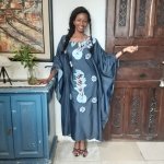 Denim embroided kaftan dress for lady